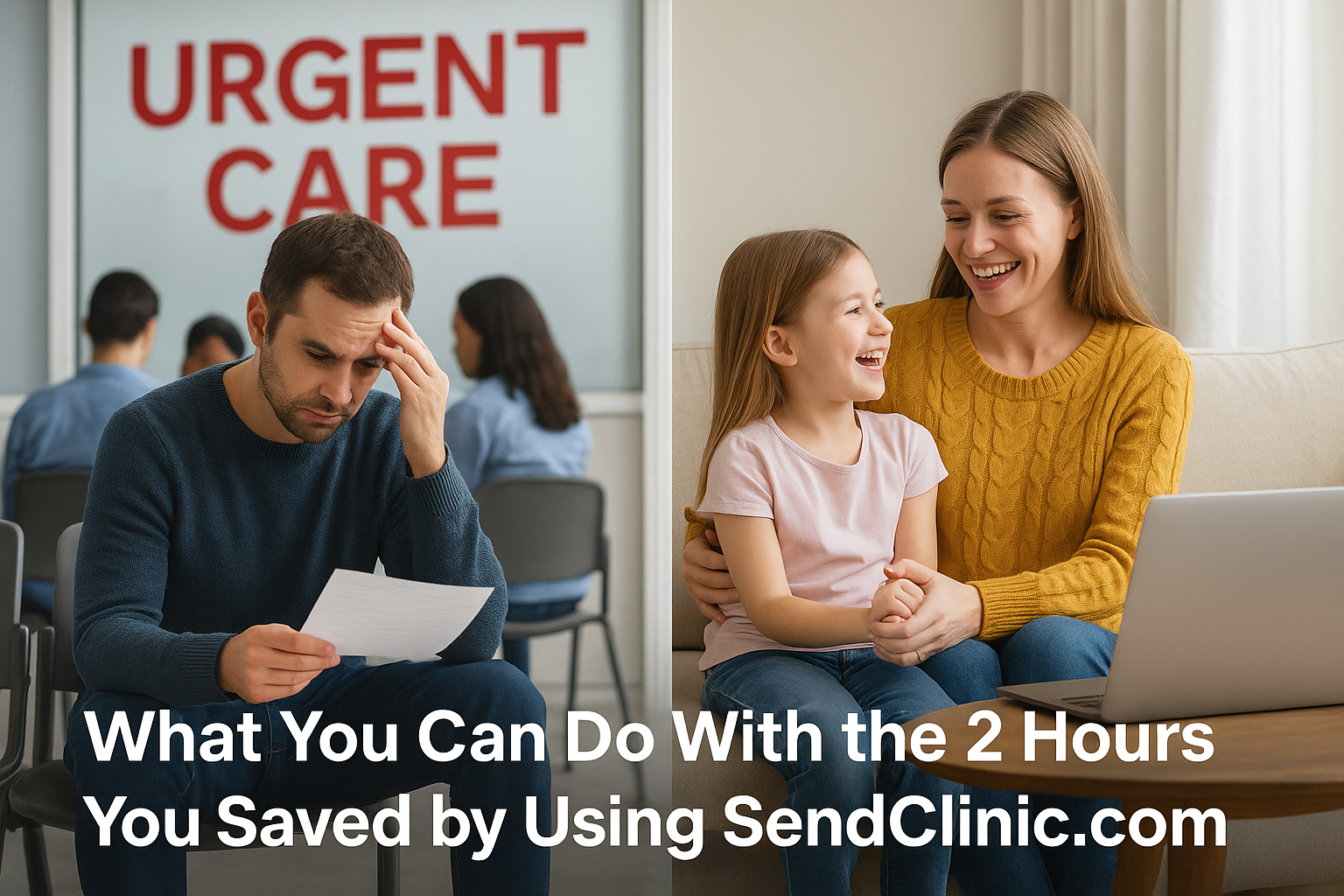 With SendClinic.com, you skip all that. Your telehealth visit can be done in 15–20 minutes—leaving you with nearly two extra hours back in your day. Here’s what you can do with the time you saved.